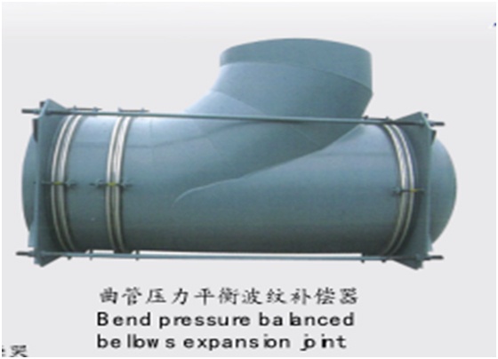 該類(lèi)補(bǔ)償器是由兩個(gè)工作波紋管,一個(gè)平衡波紋管、端接管、中間接管、彎頭、封頭和端板及平衡推桿等裝置組成,其中平衡推桿在端板連接處帶有球面和錐面墊圈構(gòu)成滑動(dòng)體,動(dòng)全在補(bǔ)償器進(jìn)行橫向補(bǔ)償時(shí)自行調(diào)整。壓力平衡型補(bǔ)償器可以對(duì)彎曲管段產(chǎn)生的橫向位移通過(guò)工作波紋管補(bǔ)償吸收,工作波紋管同時(shí)補(bǔ)償吸收直管段內(nèi)的軸向位移并通過(guò)平衡波紋和被平衡,該補(bǔ)償器一般用于“T”型和“空間門(mén)”型管道的位移補(bǔ)償,軸向剛度值為工作波紋管與平衡波紋管之和,軸向剛度較大,因此彈反力較大,該型補(bǔ)償器能平衡介質(zhì)壓力推力。